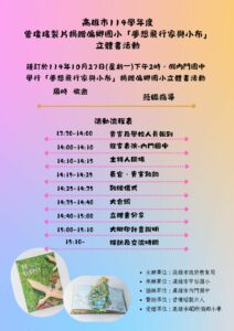 高雄市114學年度曾瓊瑤製片捐贈偏鄉國小「夢想飛行家與小布」立體書活動 Post author:五區總中心 Post published:2025 年 10 月 13 日 Post category:114學年度 / 最新消息 Tags: 成果展示, 總中心 Read more articles Previous Post第四區成果分享-教師增能-2.環境教育「微型地球」–苔蘚生態瓶製作 Next Post第五區成果發表-學生學力提升與多元展能-童心築夢小小建築師:建築知識教育與實作 You Might Also Like AR/VR媒體養成動漫製作(一)-112年10月5日(四) 2023 年 9 月 14 日 第三區數位教學增能實務研習-辦理Windows雲端工具及應用-111/11/18(五)下午 2022 年 11 月 5 日 第二區-學生多元發展-水域安全健康樂游趣-成果分享 2024 年 9 月 2 日
