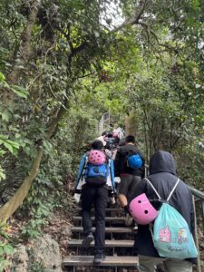 帶領學生走出教室,親近自然,前往高雄柴山展開一日的戶外探險。行程中安排山林健行與天然岩洞探訪,透過實地觀察、生態導覽與團體合作活動,讓學生體驗山林的奧妙與探索的樂趣,提升其環境覺察、身體協調與團隊合作能力。活動強調安全教育與自然尊重,引導學生在親近自然的過程中,學會觀察、珍惜與保護生態環境,培養正向冒險精神與問題解決能力,實踐寓教於樂的戶外學習目標。