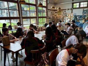| 說明:學生於修復後的菸葉輔導站進行手作課程,觀察特殊的大阪式菸樓風格建築。 | 說明:在充滿文藝氣息的空間中進行手作。學生發揮創意,專注地完成獨一無二的紀念品。 | |