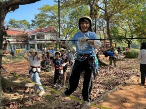 回饋意見 1.恐懼克服: 學生初期對高度感到畏懼,但在垂降與大考驗中,透過教練指引成功跨越心理障礙,體會到克服恐懼後的勇氣。 2.體能與專注:爬樹與橫渡極具挑戰,學生發現維持平衡需要極高的專注力與體力,從中了解肢體協調與鍛鍊身體的重要性。 |