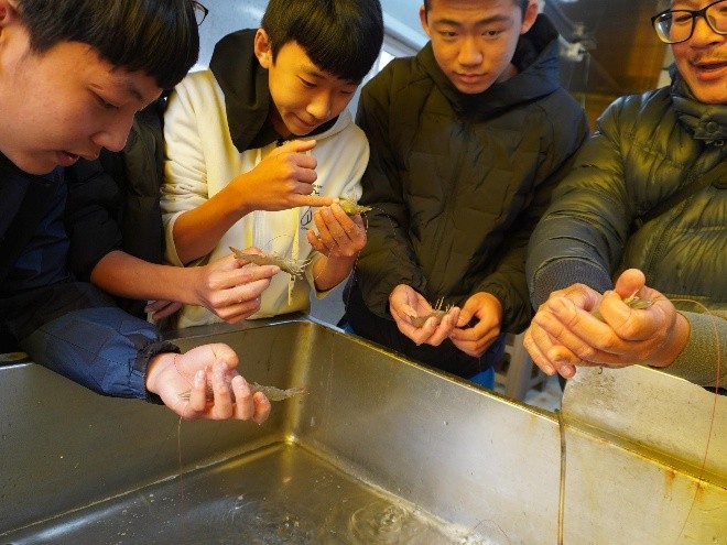回饋意見:以前覺得魚塭只是隨處可見的風景,但今天實際走進曝曬池、親手摸到活跳跳的蝦子後,才發現原來養殖業有這麼多厲害的學問,聽完老師的解說,讓我對彌陀的產業感到超級自豪,也更認同自己的家鄉了! |